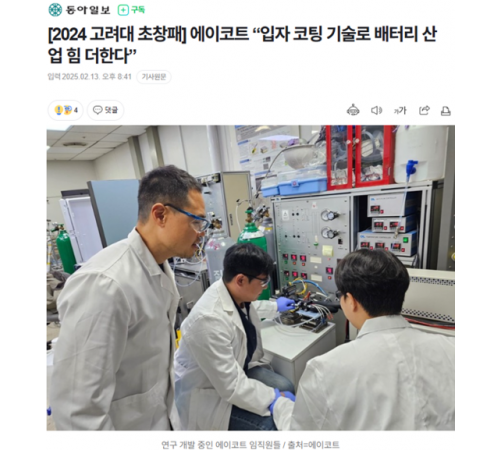 [기사] 에이코트 “입자 코팅 기술로 배터리 산업 힘 더한다"